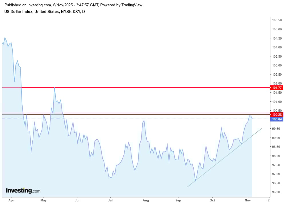 The dollar eased a bit, not because of bad data, but because markets calmed down. Stocks found support after recent selling, and that gave traders a reason to move slightly out of the dollar and into risk currencies. It’s a pause, not a reversal.