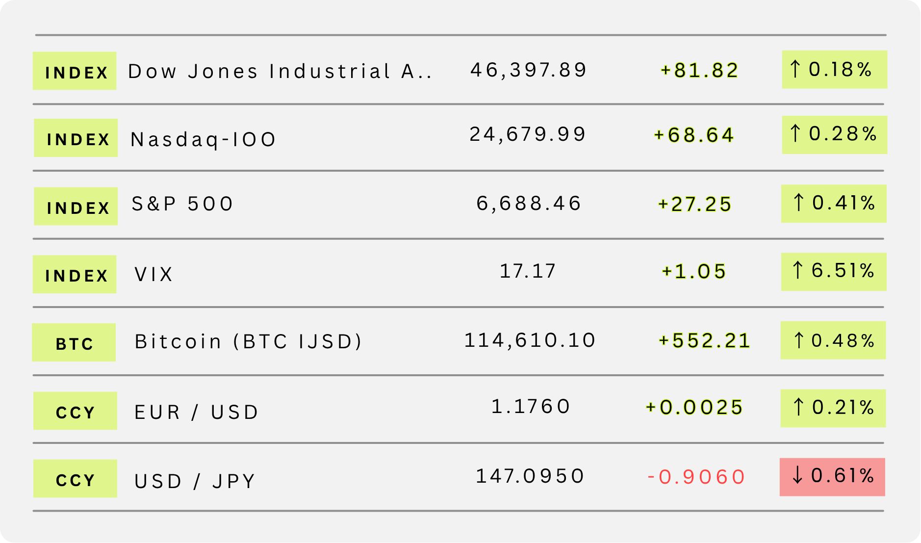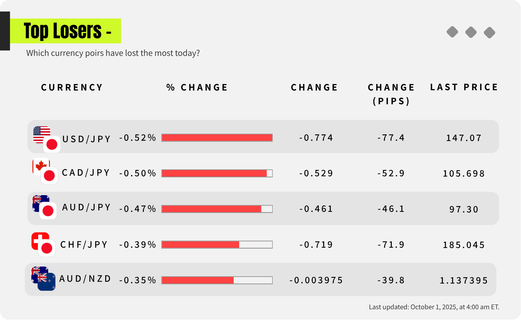 Which currencies or assets are showing clear strength or weakness?