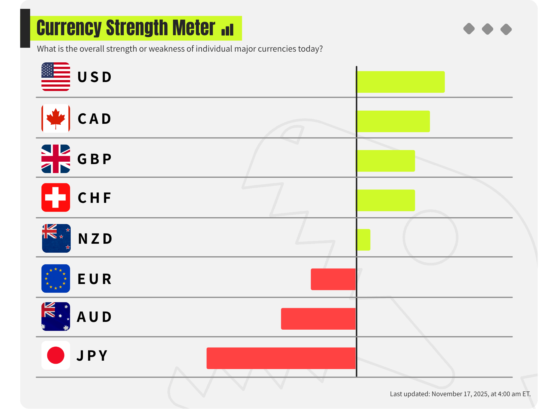 This is how the currency strength meter looks this week: