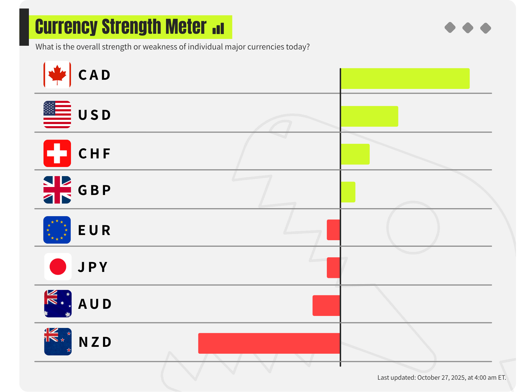 As it stands this is what the currency strength meter looks like.